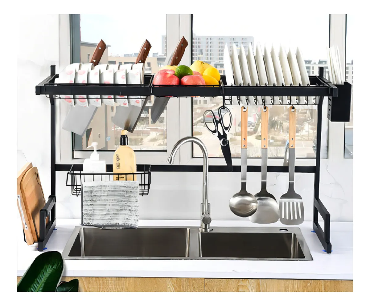 Un estante para platos de aluminio resistente que le permite secar sus platos con comodidad y en su alcance