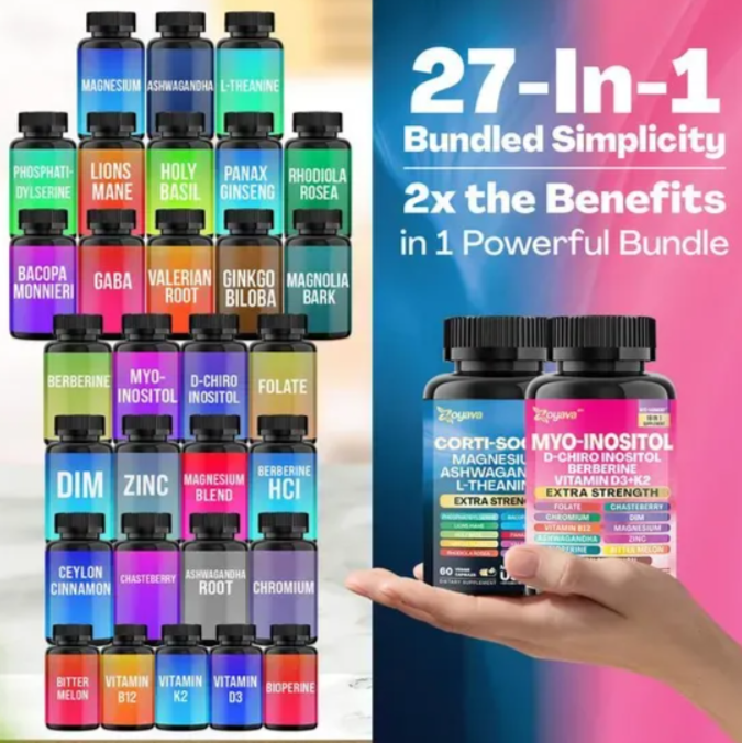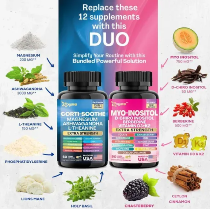 Corti-Soothe y Myo-Inositol son suplementos que se usan juntos o en el mismo producto para abordar el estrés, el equilibrio hormonal y el bienestar general. Corti-Soothe, el nombre de varios suplementos, suele incluir ingredientes adaptógenos como la Ashwagandha y minerales como el magnesio para ayudar a reducir el cortisol y aliviar el estrés.