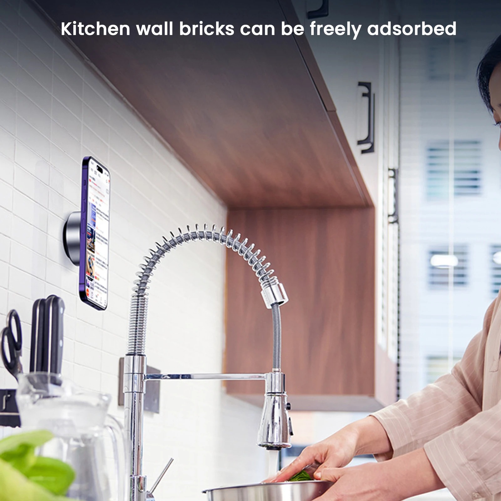 Imán de neodimio de alta retención que asegura el teléfono sin caídas.