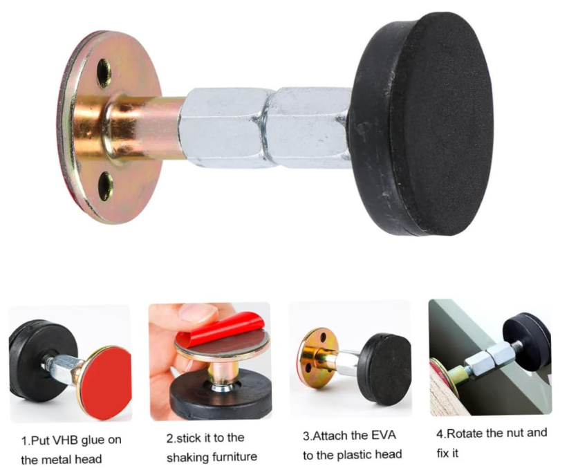 • Este tope de cama antivibración de roscada ajustable puede ser utilizado en muebles inestables o que son fáciles de sacudir. Se podrán apoyar contra la pared muebles como camas, armarios, sillas y sofás, entre otros.